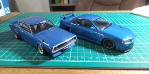 今年のテーマは「青」です。作品の名前が青に関係するもの、青色で塗装した模型作品など。