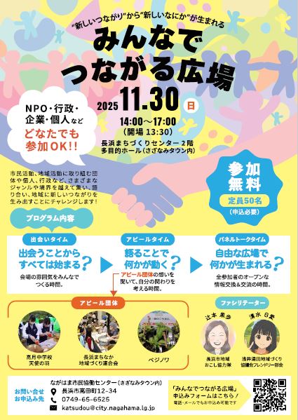 申込・問合せ先:ながはま市民協働センター☎0749-65-6525 ✉katsudou@city.nagahama.lg.jp