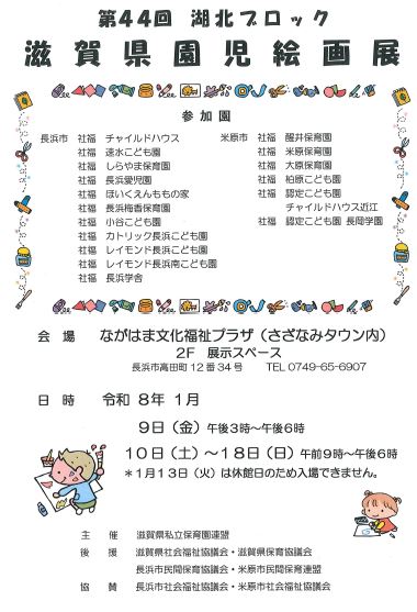 第44回湖北ブロック 滋賀県園児絵画展が開催されています。 長浜市と米原市の市立保育園・認定こども園17園の園児たちの作品(179点)を展示中。 ぜひご覧ください。