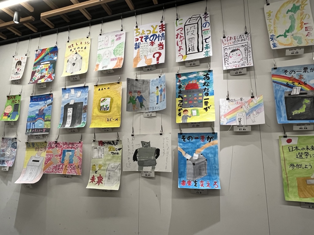 明るく正しい選挙を推進するため、長浜市明るい選挙推進協議会および長浜市選挙管理委員会において明るい選挙啓発ポスターを市内各小中学校から募集したところ応募のあった合計122点(小学校28点、中学校94点)の作品すべてが並ぶ作品展です。