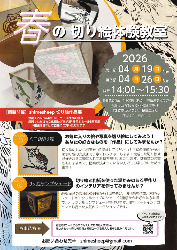 shimesheep切り絵作品展・ワークショップがさざなみタウンで開催されます。