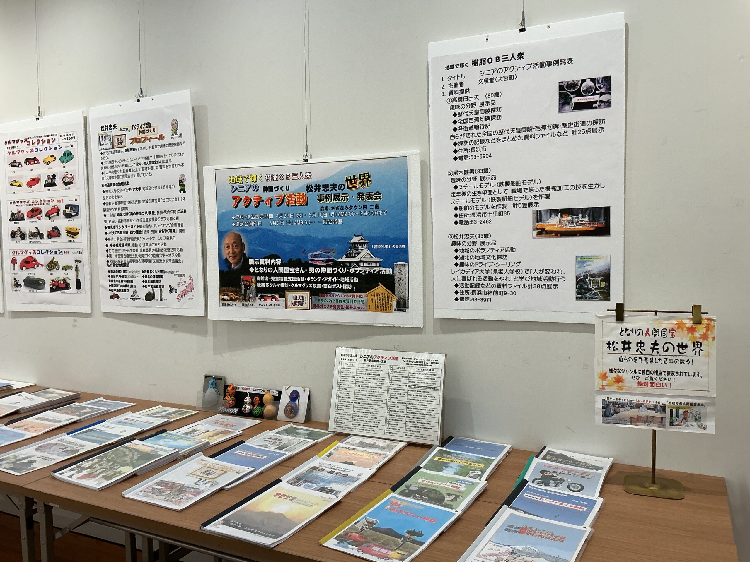 三菱樹脂(現 三菱ケミカル)に努め、退職した平均年齢80歳の仲良し3人組が、それぞれに興味のある分野に没頭し、楽しく過ごしてきたその軌跡と成果を紹介する展示が開催中です。