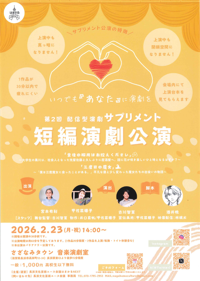 第2回 配信型演劇サプリメント 短編演劇公演(令和8年2月23日(月)・祝)